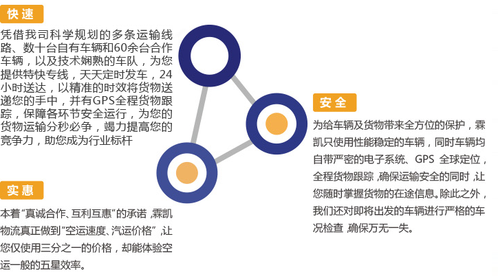 特快专线是霖凯物流有限公司的核心服务。 上海往返广东特快专线,全境直达无盲区。我们全程精准把控,天天定时发车,真正做到定向、定线、定点、定时,减少中转,避免短运,在确保物流时效的同时,杜绝不必要的货损,保障货物安全。 我们比竞争对手更: